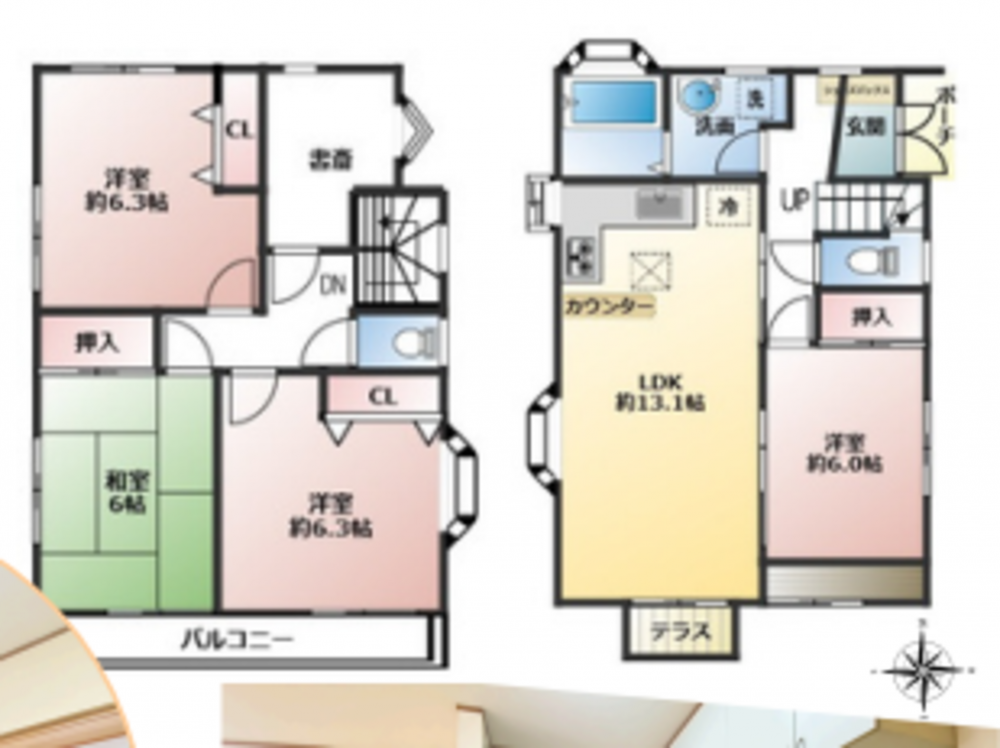 - システムキッチン、カウンターキッチン、浴室乾燥機、モニタ付インターホン、洗浄便座、トイレ2箇所、浴室に窓あり