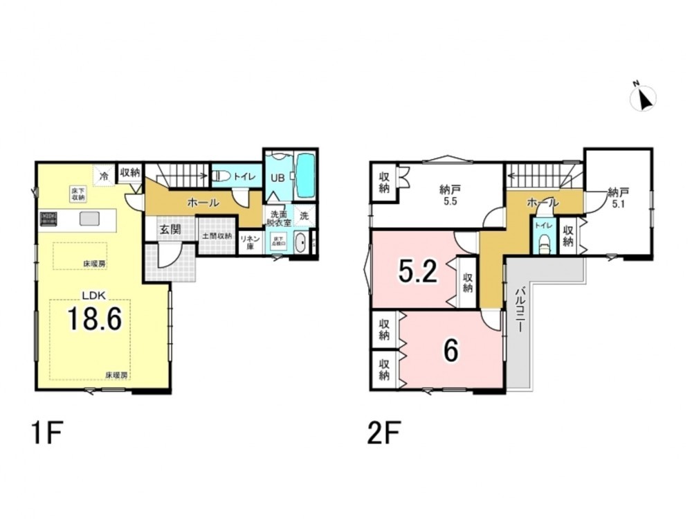 - 床暖房、システムキッチン、カウンターキッチン、食器洗浄乾燥機、浴室乾燥機、モニタ付インターホン、ウォークインクローゼット、駐車場2台分、トイレ2箇所、全室2面採光/全居室フローリング/全居室収納/浄水器