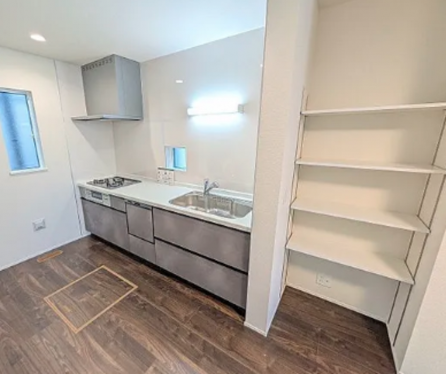 - システムキッチン、食器洗浄乾燥機、シャンプードレッサー、モニタ付インターホン、洗浄便座、ウォークインクローゼット、複層ガラス、駐車場2台分、床下収納、トイレ2箇所