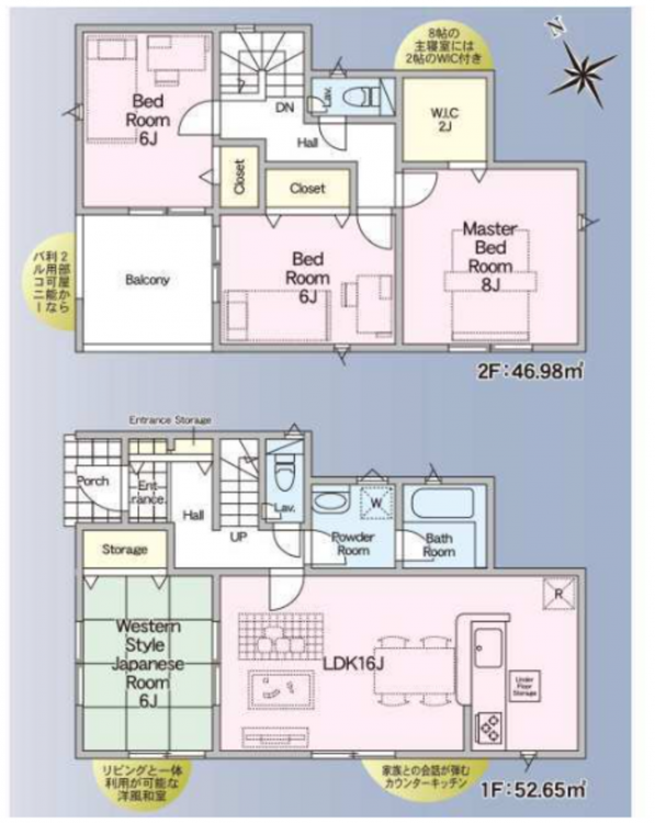 - システムキッチン、カウンターキッチン、浴室乾燥機、モニタ付インターホン、洗浄便座、ウォークインクローゼット、駐車場2台分、トイレ2箇所