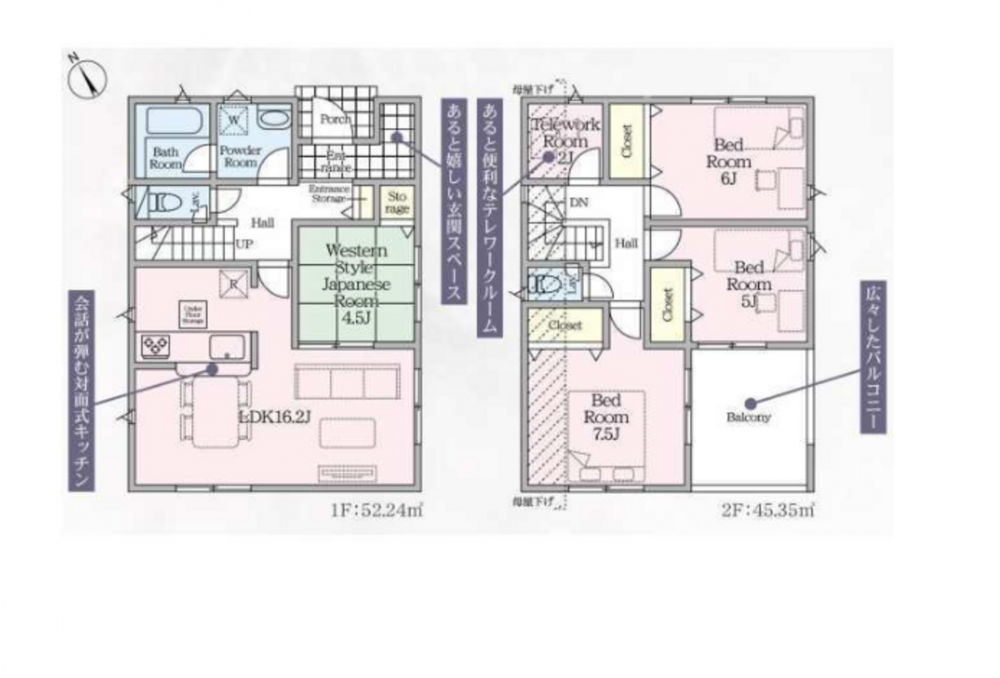 - システムキッチン、カウンターキッチン、浴室乾燥機、モニタ付インターホン、洗浄便座、駐車場2台分、トイレ2箇所