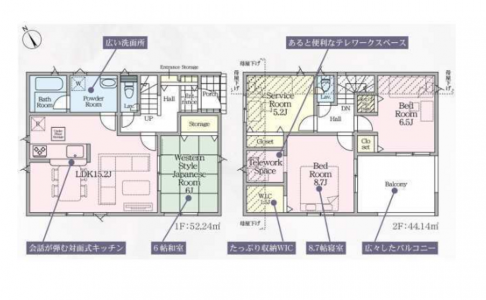 - システムキッチン、カウンターキッチン、浴室乾燥機、モニタ付インターホン、洗浄便座、ウォークインクローゼット、駐車場2台分、トイレ2箇所