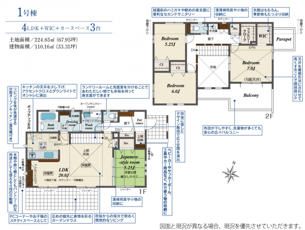 - カウンターキッチン、食器洗浄乾燥機、浴室乾燥機、モニタ付インターホン、洗浄便座、ウォークインクローゼット、駐車場3台分、トイレ2箇所、宅配ボックス