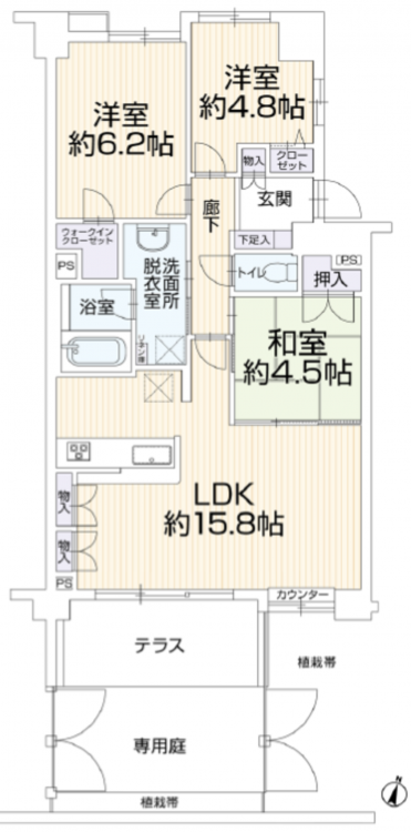 - システムキッチン、カウンターキッチン、浴室乾燥機、ウォークインクローゼット、追い焚き、オートロック、ペット可、エレベーター