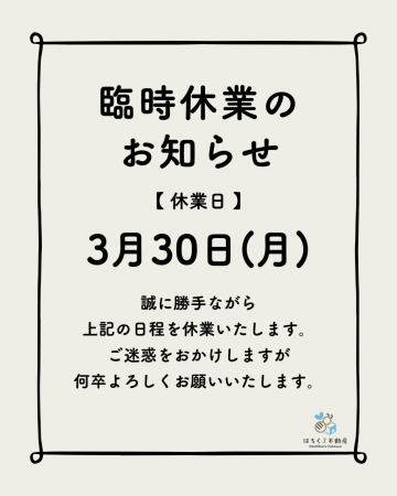 3月30日(月) 誠に勝手ながら臨時休業いたします。 お急ぎはコチラまで↓↓ 090-1135-0040(長島)